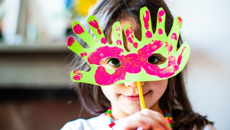 Un atelier créatif où les enfants décorent et personnalisent leurs propres masques pour devenir animaux, super-héros ou personnages imaginaires.